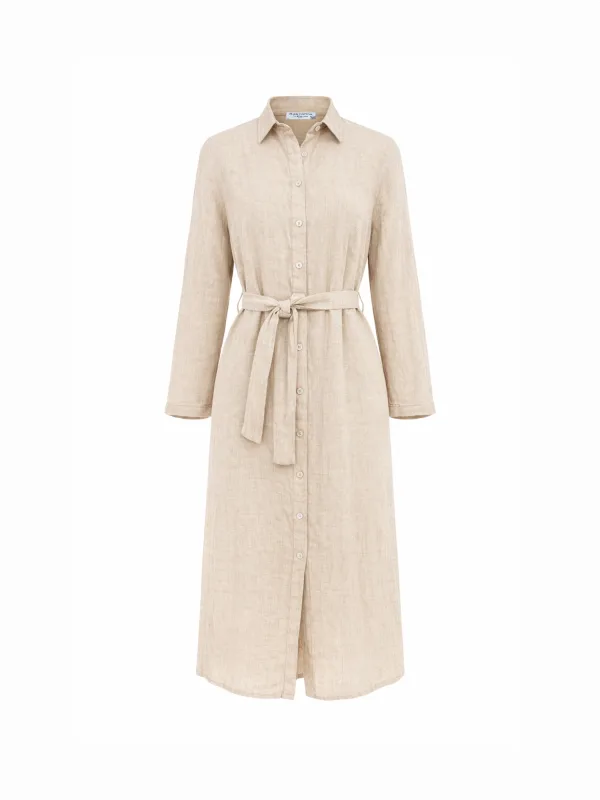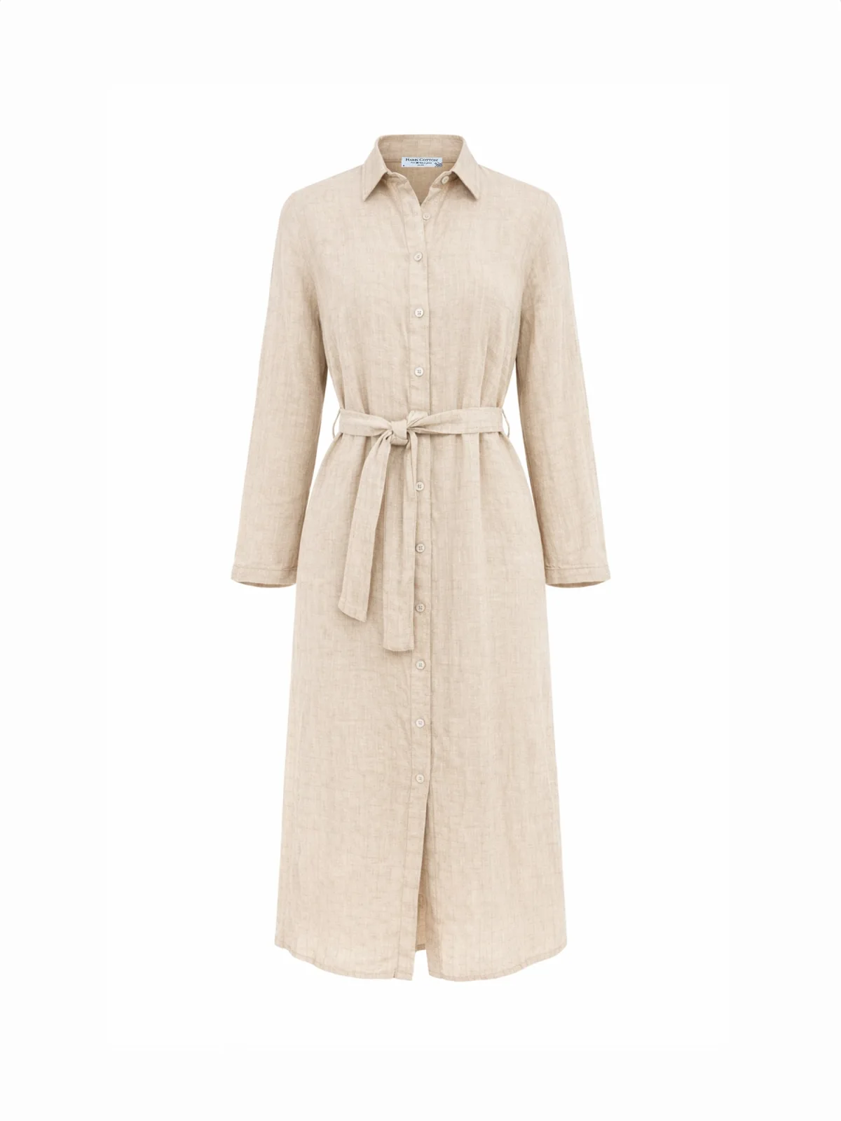 Materiaal: Linnen; Motief: Krijtstrepen; Kraag: Button-down; Soort bandjes: Normale bandjes; Lengte: Knielengte; Pasvorm: Normale pasvorm; Armlengte: Lange mouw