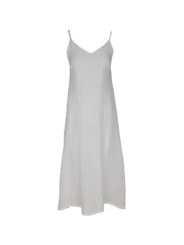 Materiaal: Linnen; Halstype: V-hals; Motief: Krijtstrepen; Soort bandjes: Spaghettibandjes; Details: Borduursels; Lengte: 7/8 lengte; Pasvorm: Normale pasvorm; Armlengte: Mouwloos