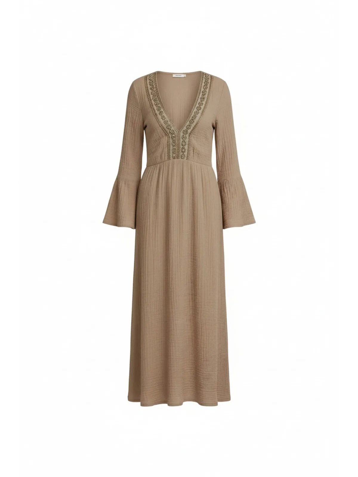 Materiaal: Katoen; Halstype: V-hals; Motief: Effen; Soort bandjes: Normale bandjes; Details: Kant; Lengte: Lang/maxi; Pasvorm: Losse pasvorm; Armlengte: Lange mouw