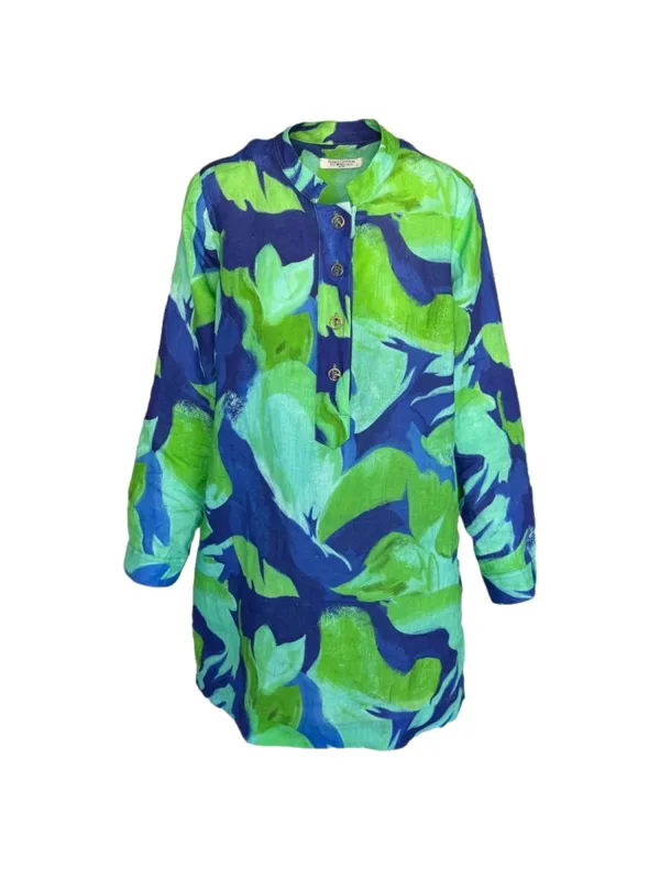 Materiaal: Linnen; Motief: Bloemenprint; Kraag: Tuniek kraag; Pasvorm: Normale pasvorm; Armlengte: Lange mouw; Lengte: Normale lengte