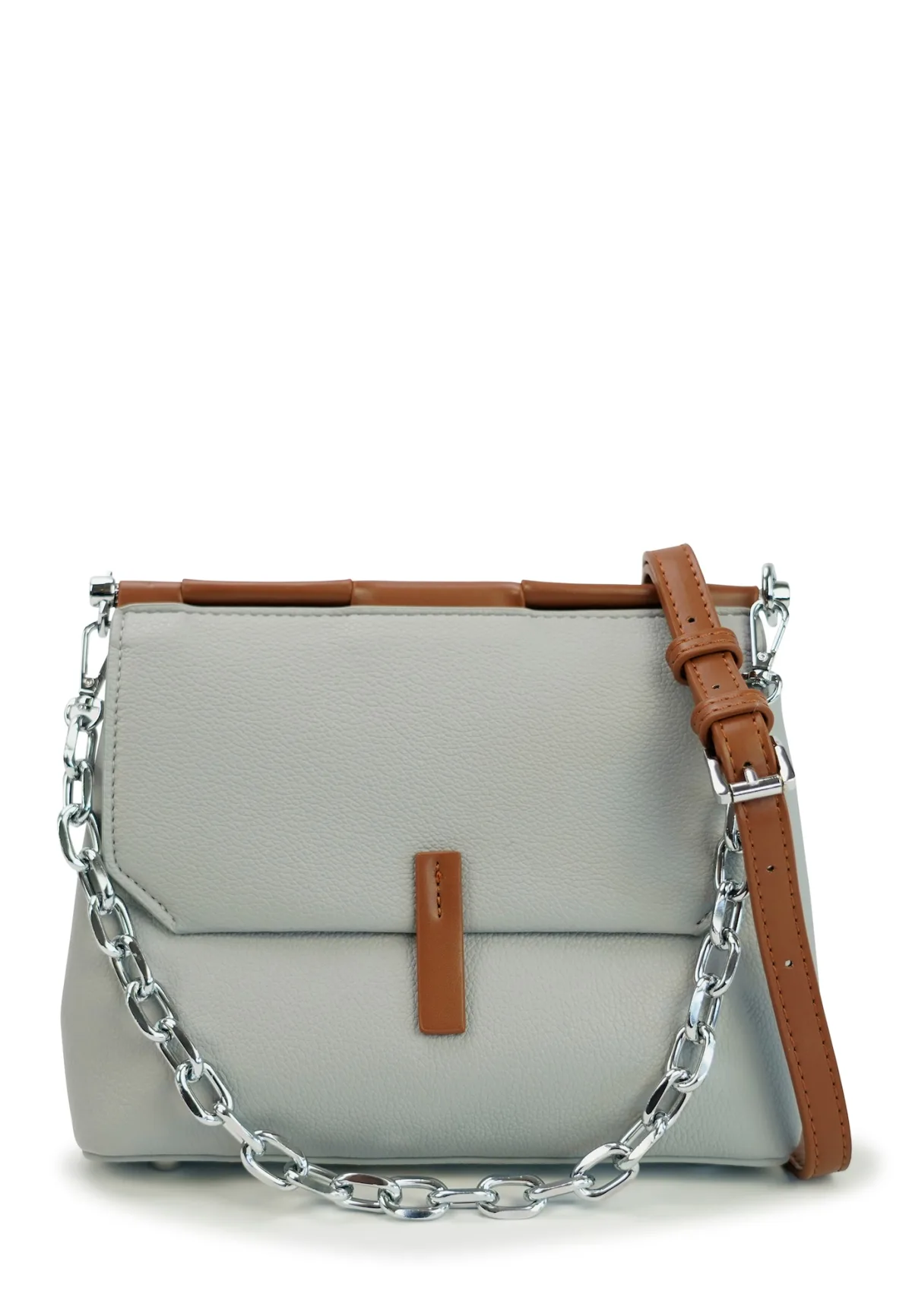 HARPA Schoudertas 'KOA' bruin / rookgrijs / pastelgroen / zilver