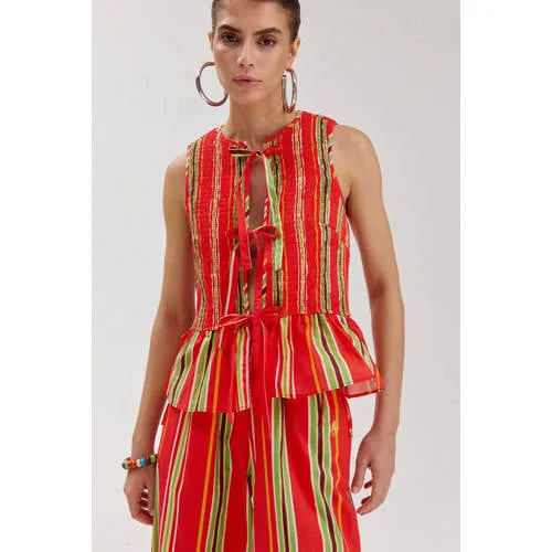 Met deze mouwloze katoenen blouse voor dames van HARPER & YVE voeg je eenvoudig een kleurrijk item toe aan je zomergarderobe. Model 'CINDY' heeft een multi kleur streepprint die direct opvalt. De blouse is gemaakt van 100% katoen, wat zorgt voor een soepele, luchtige stof op warme dagen. De ronde hals, knoopsluiting aan de voorkant en het strikje geven een verzorgde uitstraling, geschikt voor zowel casual momenten als een nette combinatie.Zomerse details in streepprint Mouwloos model, geschikt voor het zomerseizoen Gemaakt van 100% katoen voor een luchtig en soepel gevoel Multi kleur streepprint voor een opvallende uitstraling Ronde hals en knoopsluiting aan de voorkant Strikdetail aan de voorkant Geen borstzakken, waardoor de print ononderbroken doorloopt Onderdeel van de Rebel collectie in standaardmatenGeschikt voor verschillende combinatiesDe blouse valt licht en luchtig, wat prettig is op warme zomerdagen. Draag de blouse op een jeansshort met sandalen voor een casual dag, of combineer met een hoge pantalon en loafers voor een meer formele outfit. Door de knoopsluiting is de blouse ook open te dragen over een top.Kenmerkende stijl van HARPER & YVEHARPER & YVE ontwerpt eigentijdse damesmode met herkenbare prints en doordachte details. De collecties hebben aandacht voor pasvorm en draagbaarheid, zodat je kledingkast bestaat uit items die je eenvoudig kunt combineren voor verschillende gelegenheden.Een zomerse blouse die kleur en comfort op een toegankelijke manier samenbrengt in je garderobe.