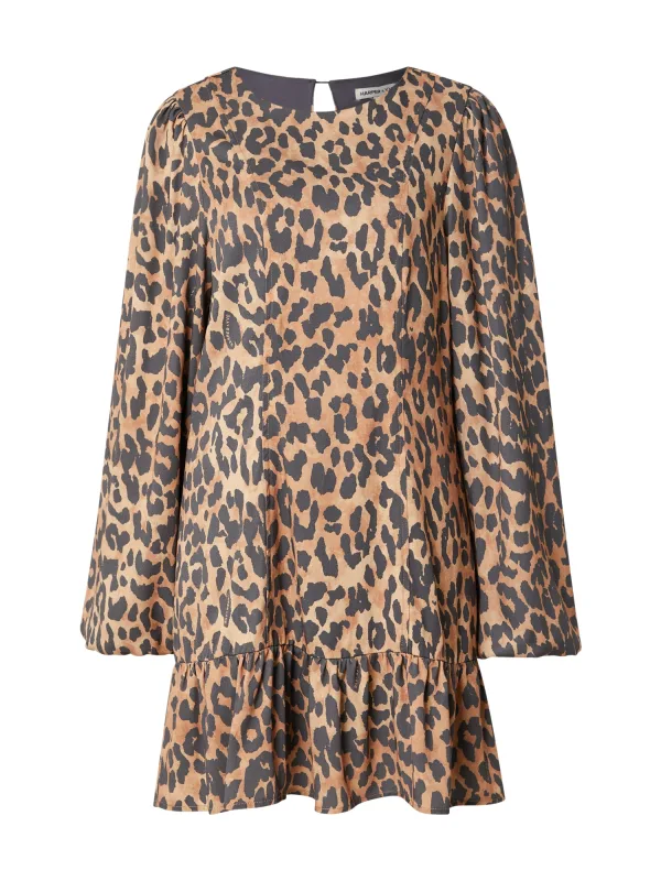 Design: Gevoerde zoom/rand, Keyholesluiting, Pofmouwen, Deelnaden; Type sluiting: Knoopsluiting; Materiaal: Viscose; Halstype: Ronde hals; Motief: Dierenprint; Details: Cut-outs, Volant, Gedrapeerd; Extra's: All-over patroon, Voelt zacht aan; Lengte: Kort/mini; Snit: Uitlopend; Pasvorm: Normale pasvorm; Armlengte: Lange mouw