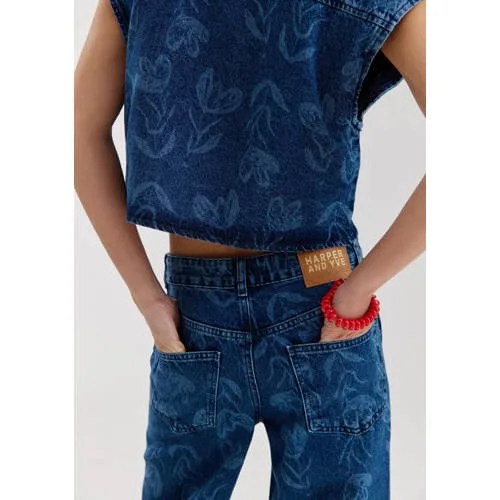 HARPER & YVE MAYRA-PA gebloemde wide leg jeans medium blue denim Prijzen