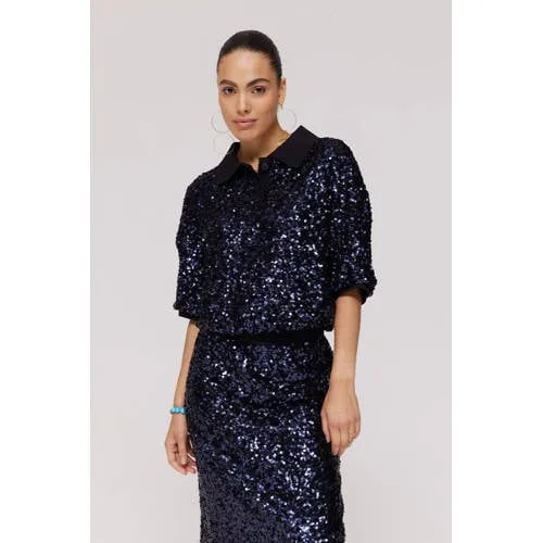 HARPER & YVE T-shirt donkerblauw met pailletten