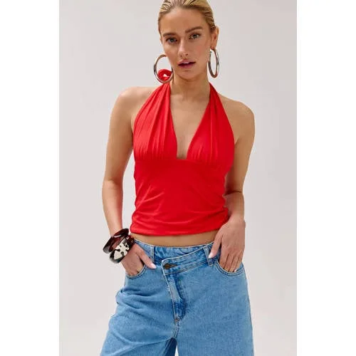 Deze rode haltertop van viscose voor dames van HARPER & YVE is een luchtige top voor zomerse dagen. De MORRISS top heeft een mouwloos model met halterkraag dat de schouders vrij laat en zorgt voor een open, zomerse uitstraling. De effen rode kleur is makkelijk te combineren met denim, linnen broeken of een rok.Details van de MORRISS top Gemaakt van 100% viscose, voelt soepel en zacht aan op de huid Mouwloos model, ideaal voor warme dagen Halterkraag voor een open halslijn en blote schouders Effen rode kleur die goed combineert met basic en opvallende items Top zonder zakken voor een rustige, strakke uitstraling Onderdeel van de Rebel collectie, geschikt voor het zomerseizoenZomerse top voor elke dagDe MORRISS top is geschikt voor verschillende momenten, van een werkdag met een blazer tot een dag op het terras met een korte broek. De soepele viscose beweegt makkelijk met je mee en de mouwloze pasvorm geeft veel vrijheid bij armen en schouders.Over HARPER & YVEHARPER & YVE staat bekend om collecties met herkenbare details en een eigen stijl, waarin je makkelijk items met elkaar combineert. De ontwerpen sluiten aan op het dagelijks leven, met aandacht voor draagcomfort en modische accenten. Met deze top haal je een kledingstuk in huis dat past binnen een moderne, veelzijdige garderobe.Een luchtige keuze die goed past bij je zomergarderobe.