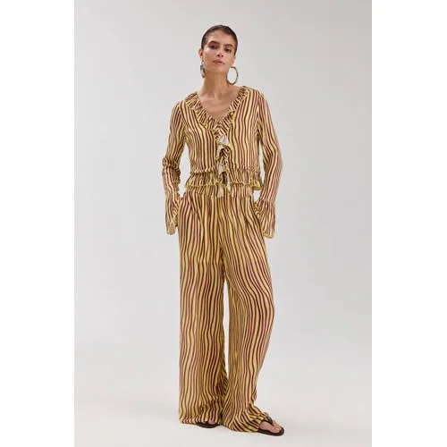 HARPER & YVE wide leg high waist gestreepte broek geel