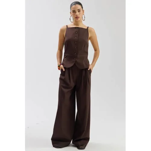 Specificaties: HARPER & YVE wide leg regular waist broek bruin