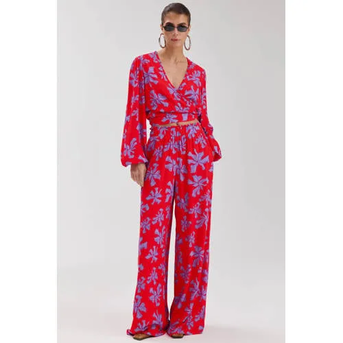 Specificaties: HARPER & YVE wide leg regular waist gebloemde broek rood