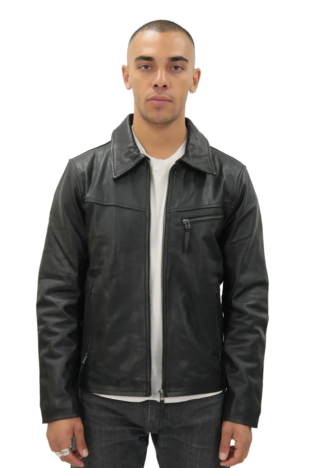 Onze premium koeienhuid is terug te vinden in dit vintage jasje in Harrison-stijl. Dit is een geweldig stuk met die minimalistische elegantie. Handgepolijste metalen hardware past prachtig bij de donkere, gladde tinten waarin deze jas verschijnt. Aan de voorkant bevindt zich een zak met ritssluiting op de borst en het schouderstuk is voorzien van panelen voor extra diepte aan de verder eenvoudige look. Zakken met ritssluiting bevinden zich aan de zijkanten van de jas voor opslag, evenals twee extra zakken aan de binnenkant van de jas, die is gemaakt van ons premium polyester. • Echte koeienhuid van hoge kwaliteit • Drie externe zakken met ritssluiting • YKK-ritssluiting in het midden • Klassieke kraag in overhemdstijl • Zakken geïntegreerd in de voering van de jas • Premium polyester voering