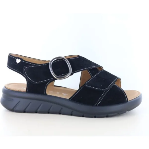 De Hartjes 132.1802 Calypso sandaal in wijdte K is speciaal ontworpen voor dames die op zoek zijn naar extra ruimte én maximaal comfort. Dankzij de extra brede pasvorm biedt deze sandaal volop bewegingsvrijheid, ideaal bij bredere voeten of voetklachten zoals hallux valgus.Het bovenwerk van zacht nubuck leer voelt soepel aan en vormt zich comfortabel naar de voet. De praktische klittenbandsluitingen zorgen ervoor dat u de sandaal eenvoudig naar wens kunt afstellen. Zo ervaart u altijd een stabiele en persoonlijke pasvorm, of u nu een dagje op pad gaat of langere tijd loopt.Wat deze comfortabele dames sandaal extra bijzonder maakt, is het uitneembare voetbed. Hierdoor is de schoen perfect geschikt voor eigen steunzolen, wat bijdraagt aan een gezonde en ergonomische ondersteuning. De lichtgewicht zool met schokdemping zorgt bovendien voor een moeiteloze afwikkeling van de voet en vermindert druk op gewrichten.Hartjes staat bekend om haar focus op kwaliteit, pasvorm en comfort. Deze sandaal is daar een uitstekend voorbeeld van en combineert functionaliteit met een tijdloze, verzorgde uitstraling in klassiek zwart.