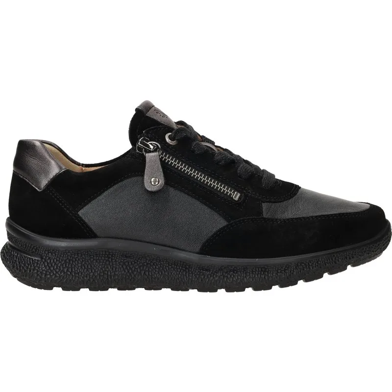 Deze Hartjes Rap Sneakers zijn voor Dames in de kleur Zwart. De schoenen zijn gemaakt van het materiaal Leer;Suède en de voering is gemaakt van . De voetbreedte van de schoenen is K – extra breed.