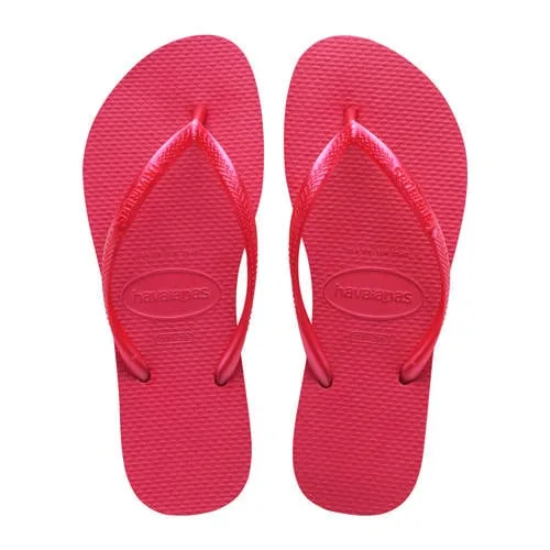 Deze Havaianas teenslippers voor dames hebben een platte zool en zijn gemaakt van rubber. De Slim stijl zorgt voor een comfortabele pasvorm. Ideaal voor een ontspannen dagje uit of een casual zomerse look.