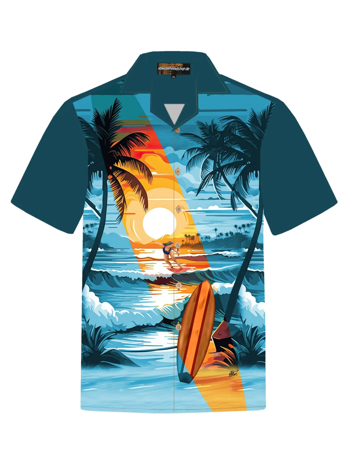 Hawaiihemdshop.de Overhemd ‘Hawaiihemd “Beach Day”‘  hemelsblauw