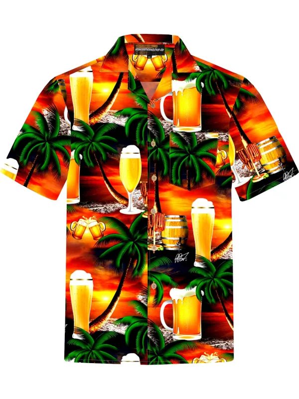 Hawaiihemdshop.de Overhemd ‘Hawaiihemd “Beer in Paradise”‘ oranje