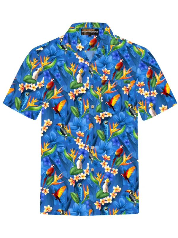 Hawaiihemdshop.de Overhemd ‘Hawaiihemd “Flower Parrots (blue)”‘ blauw