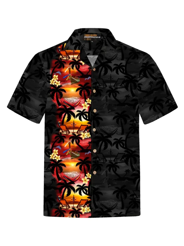 Hawaiihemdshop.de Overhemd ‘Hawaiihemd Paradise Night’ zwart