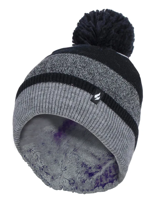 Heat Holders – Dames Thermische Winter Pom Pom Muts – Zwart Grijs