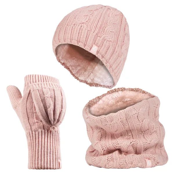 Heat Holders dameshoed, nekwarmer handschoenen set – Schemerig Roze