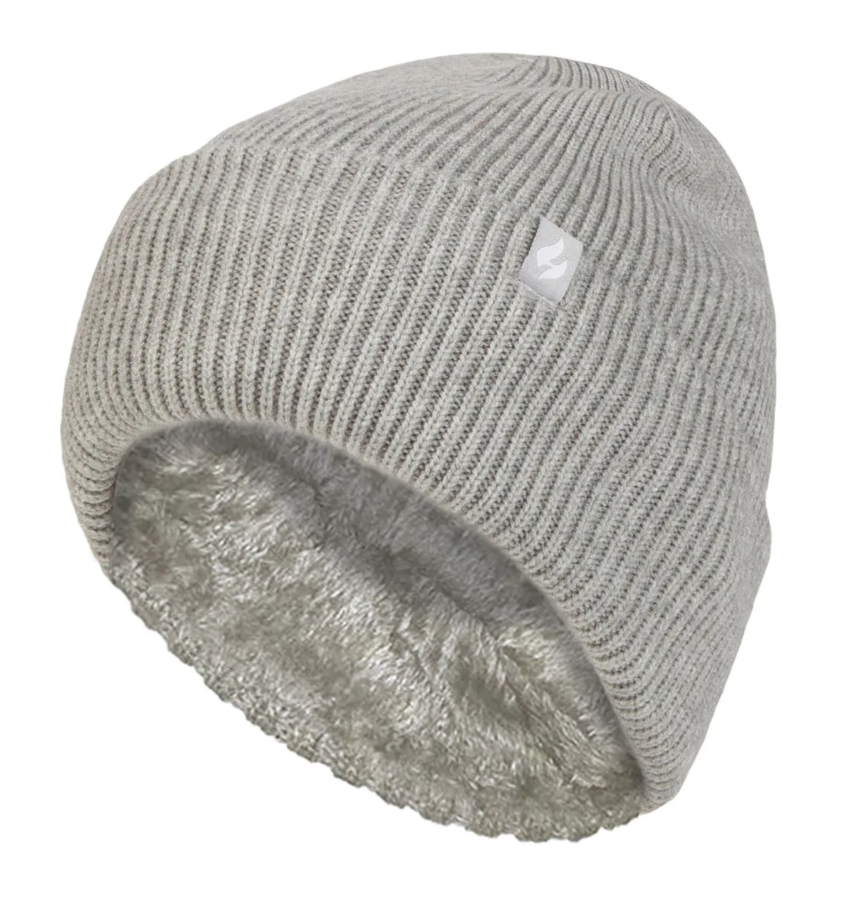 Heat Holders – Gevoerde geribbelde omzethoed voor dames – Lichtgrijs