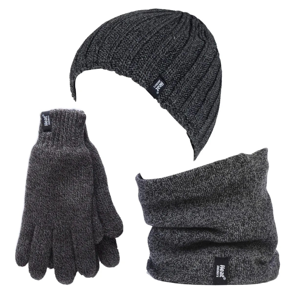 Heat Holders herenhoed, nekwarmer handschoenen set – Grijs