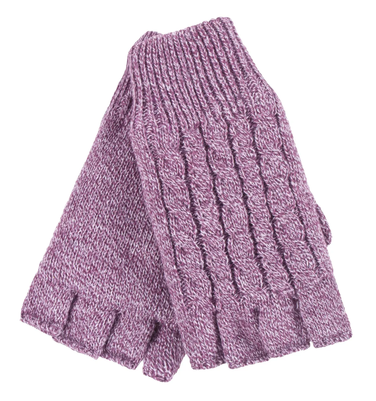 Heat Holders – Kabelgebreide dameshandschoen zonder vingers – Roos