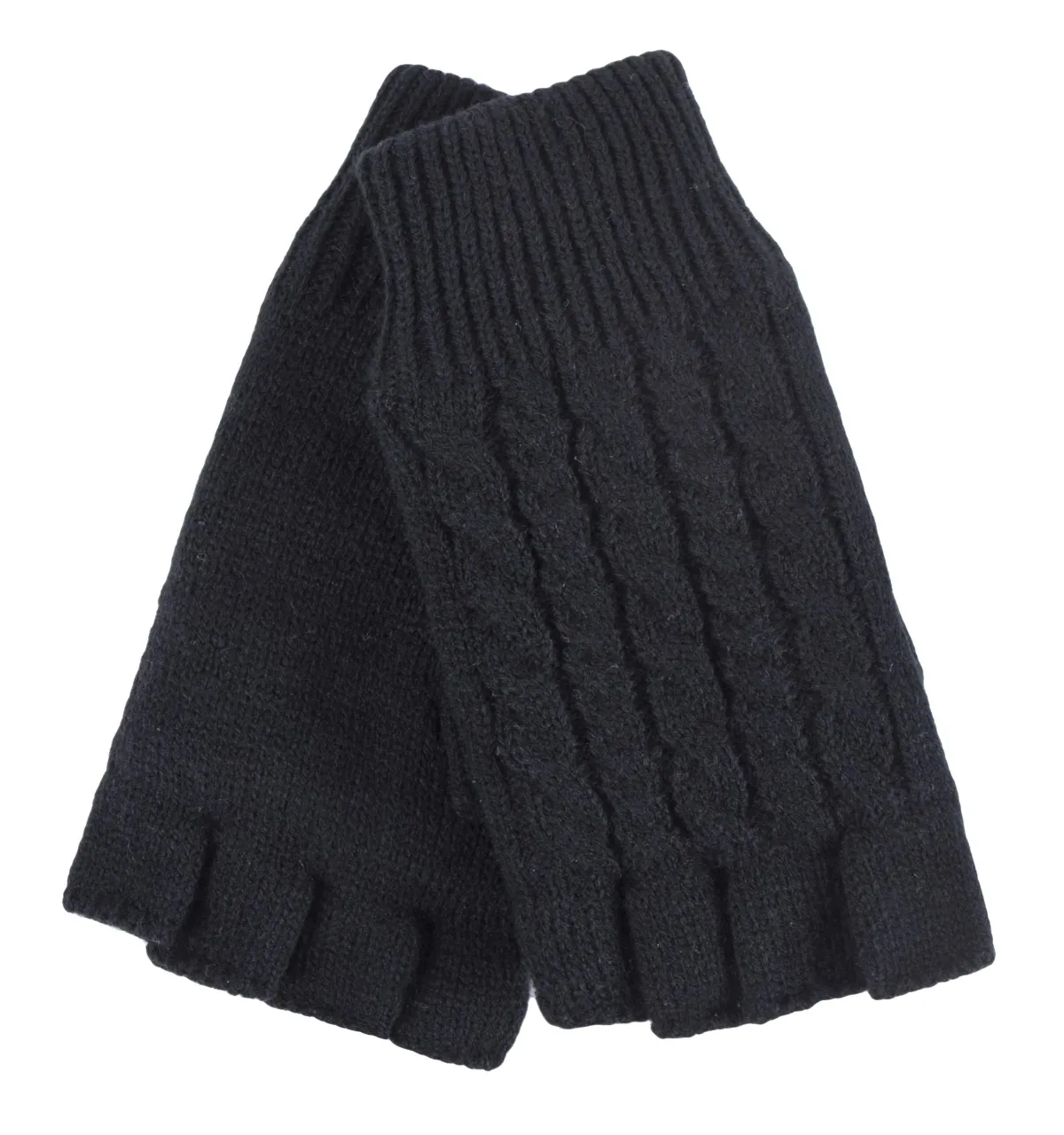 Heat Holders - Kabelgebreide dameshandschoen zonder vingers - Zwart