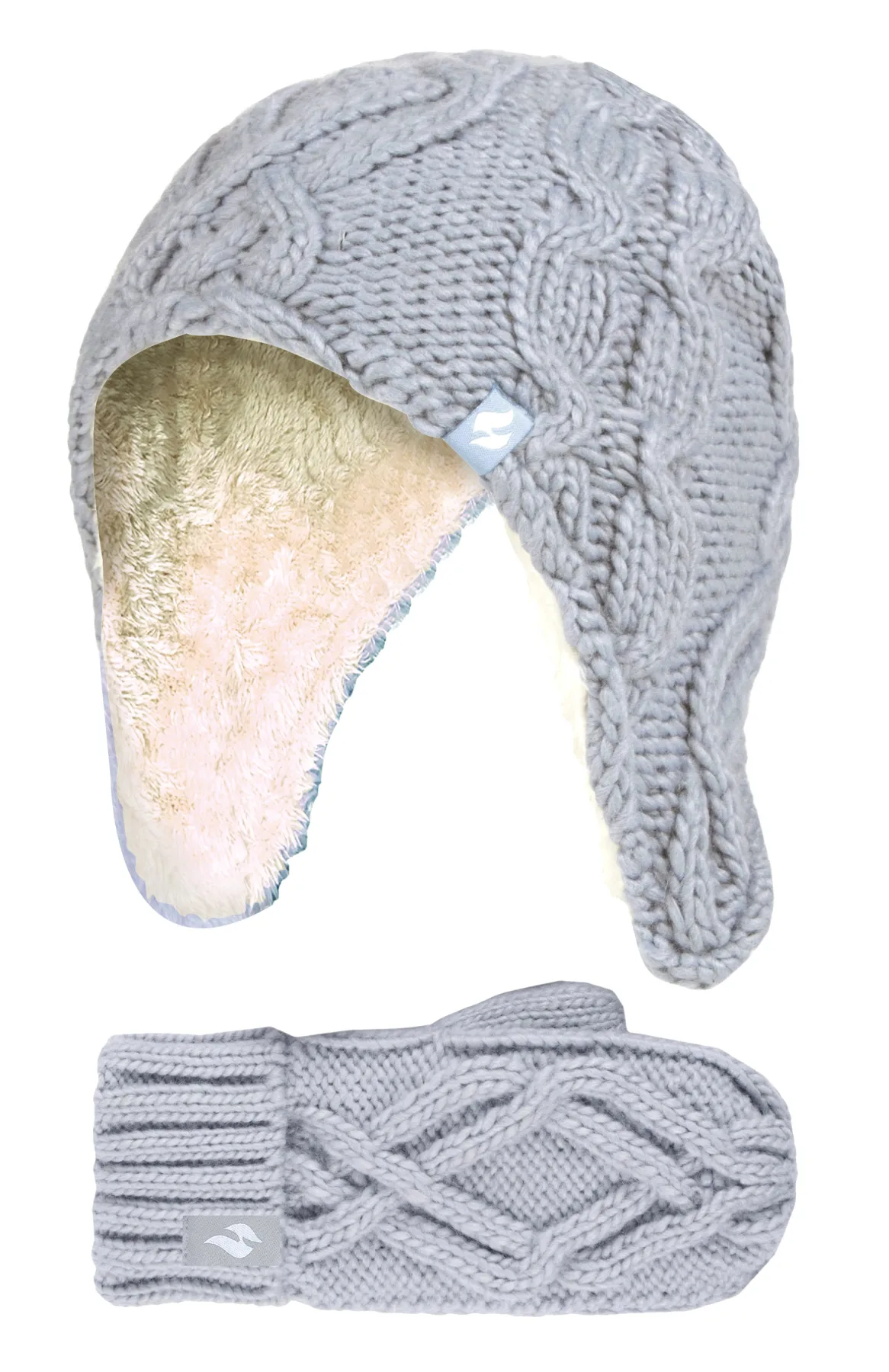 Heat Holders Meisjes Majestueuze Trapper Hat Mitts Set – Vorstgrijs