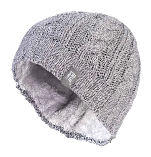 Heat Holders Thermische kabelgebreide wintermuts voor dames – Lichtgrijs