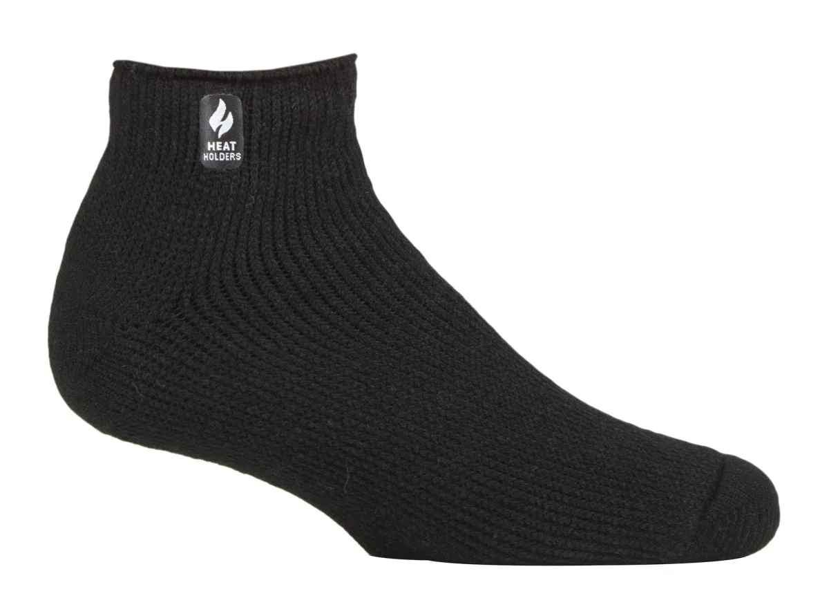 Dezelfde warmte en comfort als de originele Heat Holders® Crew sok, maar met een kortere enkellengte! Houd je voeten warm op de koudste dagen en trek deze enkellange Heat Holders® voor heren aan, de ultieme thermo sok. Dik, grof en met een enorme tog rating van 2,34, Heat Holders® zijn gemaakt van een speciaal ontwikkeld zwaar bulkgaren dat extreme thermo eigenschappen heeft. Met hoogpolige demping helpen deze thermo sokken de voeten volledig comfortabel en ondersteund te houden. De binnenkant van elke sok is intensief geborsteld, wat niet alleen sensationeel zacht aanvoelt, maar ook warme lucht dicht bij de huid vasthoudt, zodat je voeten goed blijven zitten warmer voor langer. Dit zijn heren maat 39-45 EU en zijn verkrijgbaar in 2 verschillende kleurvariaties: Zwart& Marine. Ze zijn gemaakt van 93% acryl, 4% nylon, 2% polyester, 1% elastaan en zijn machinewasbaar.