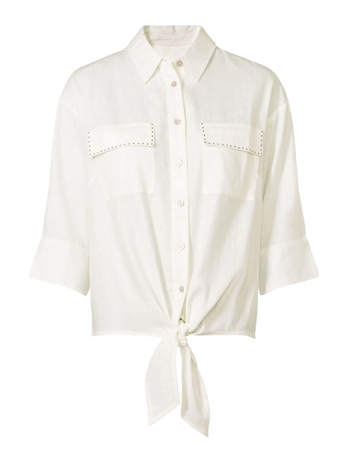 Blouse type: Klassieke blouse; Design: Om te knopen/binden, Borstzak; Materiaal: Viscose; Motief: Effen; Kraag: Kentkraag; Details: Sierstenen; Extra's: Op staal naden, Voelt zacht aan; Pasvorm: Losse pasvorm; Armlengte: Driekwart mouw; Lengte: Normale lengte