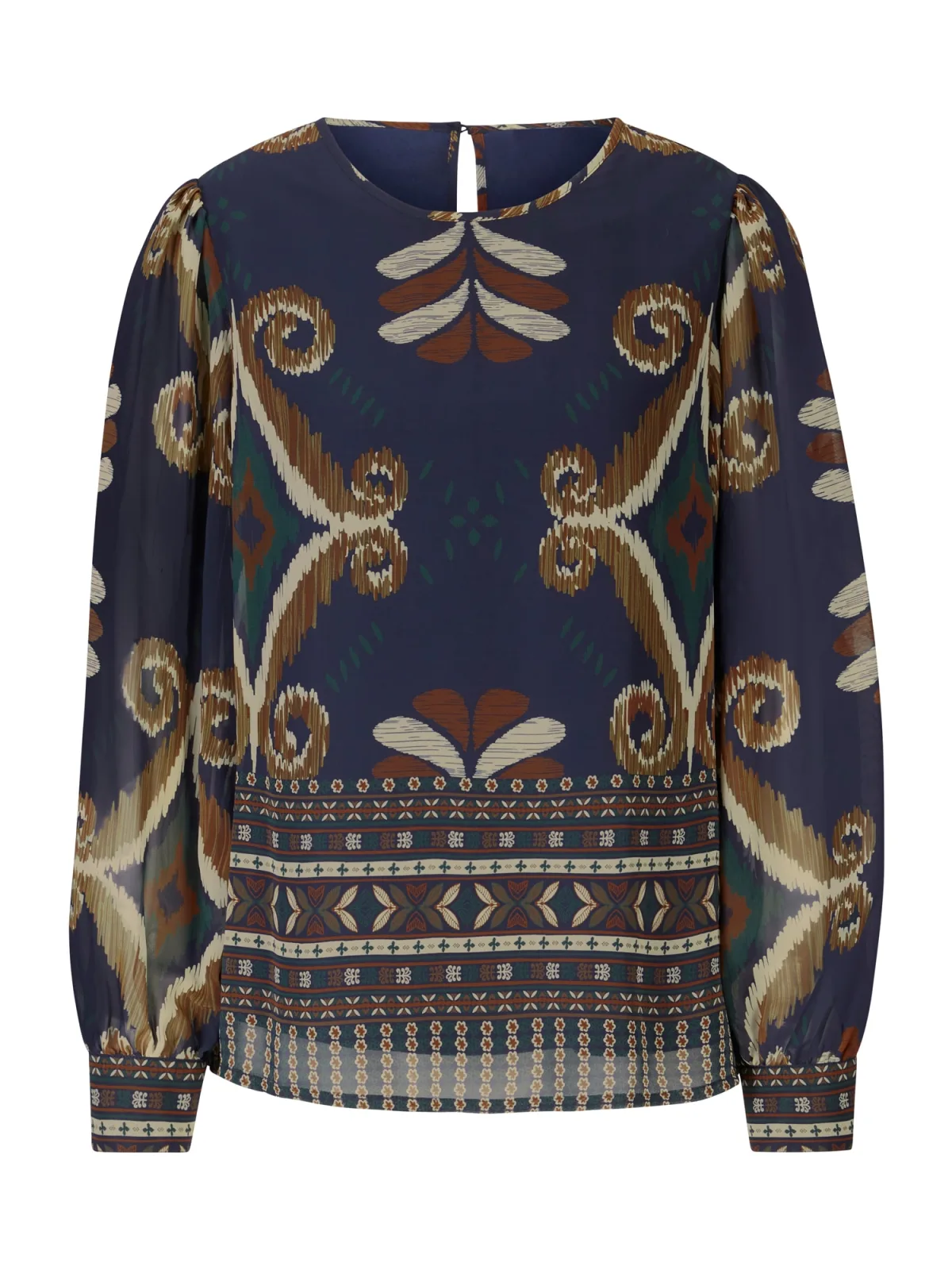 heine Blouse marine / kastanjebruin / lichtgroen Prijzen