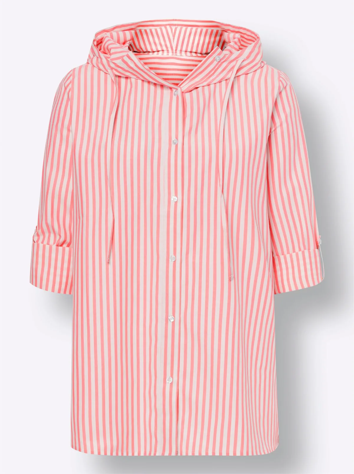 Blouse type: Blouseshirt; Design: Gevoerde zoom/rand, Capuchon met trekkoord; Type sluiting: Knoopsluiting; Materiaal: Katoen; Motief: Gestreept; Extra's: Op staal naden; Pasvorm: Normale pasvorm; Armlengte: Lange mouw; Lengte: Lange pasvorm