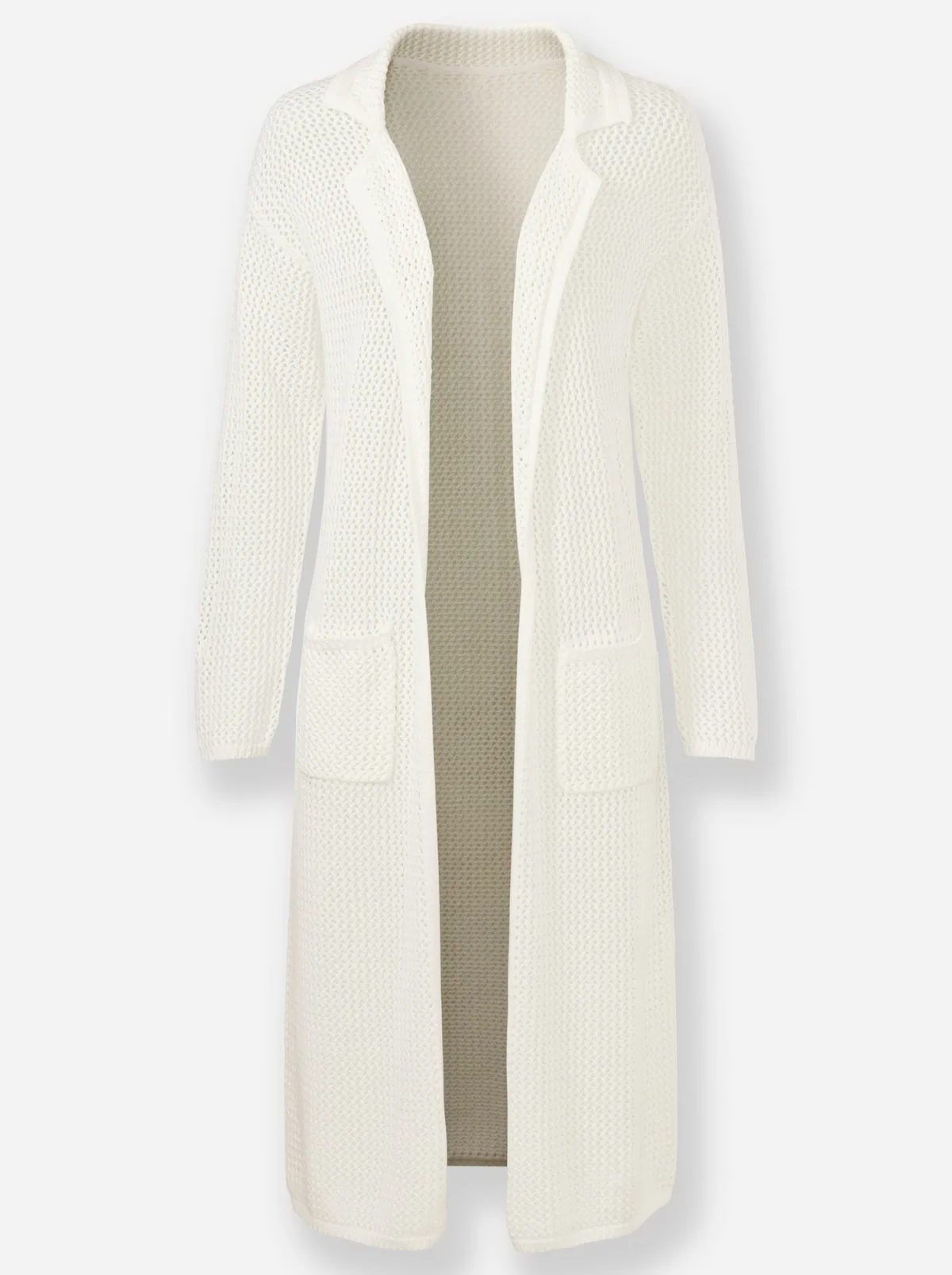 Design: Opgezette zakken; Materiaal: Knitwear; Motief: Effen; Details: Mesh; Extra's: Voelt zacht aan; Pasvorm: Normale pasvorm; Armlengte: Lange mouw; Lengte: Lange pasvorm
