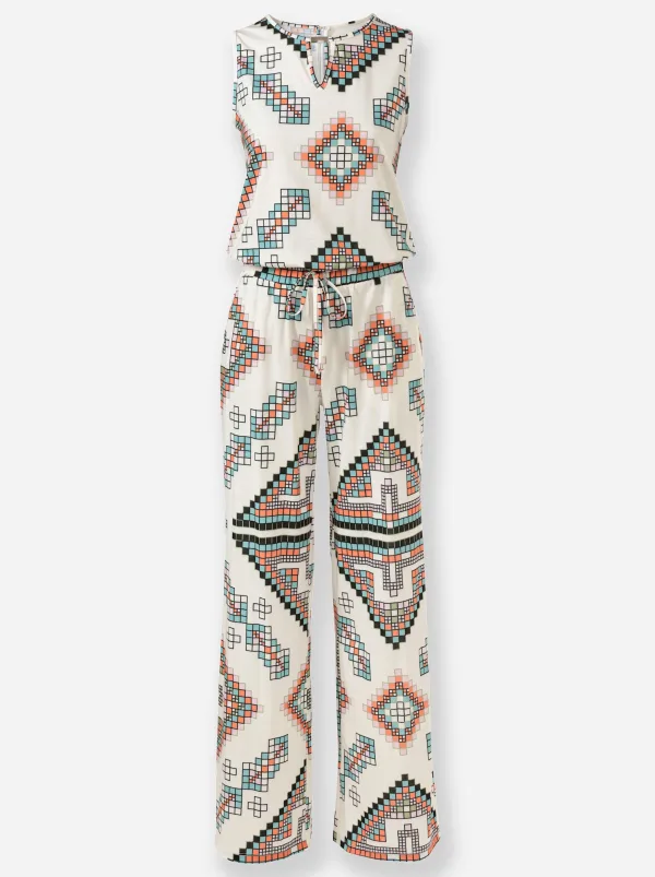 heine Jumpsuit crème / turquoise / oranje / zwart