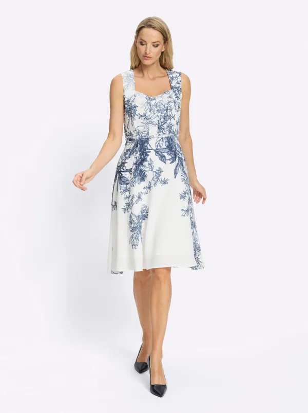 Design: Gevoerde zoom/rand; Type sluiting: Ritssluiting; Halstype: Carréhals; Soort bandjes: Brede bandjes; Extra's: All-over patroon; Lengte: Knielengte; Pasvorm: Normale pasvorm; Armlengte: Mouwloos