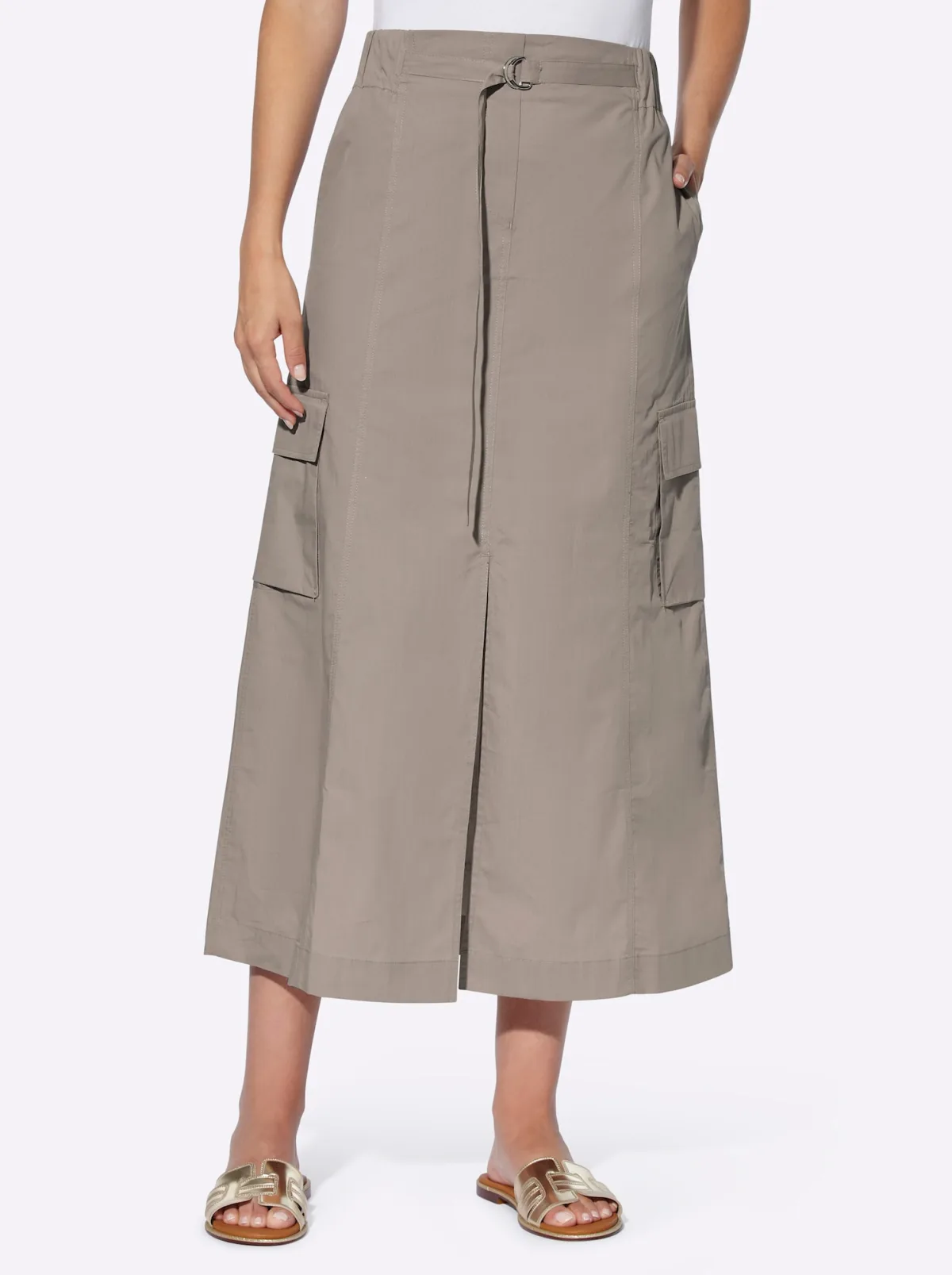 Design: Elastische taille/zoom, Split, Cargozak, Met riem, Zakken aan de zijkant; Type sluiting: Slip; Materiaal: Katoen; Motief: Effen; Rokvorm: A-lijn rok; Extra's: Op staal naden, Voelt zacht aan; Lengte: 3/4 lengte; Pasvorm: Normale pasvorm; Taillehoogte: Mid waist