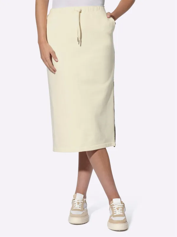 Design: Elastische taille/zoom, Split, Zijdelingse strepen, Opgezette zakken; Type sluiting: Elastische band; Materiaal: Sweatstof; Motief: Color-Blocking; Rokvorm: Kokerrok; Details: Zijstrepen; Extra's: Trekkoord in de boord, Op staal naden; Lengte: 3/4 lengte; Pasvorm: Normale pasvorm