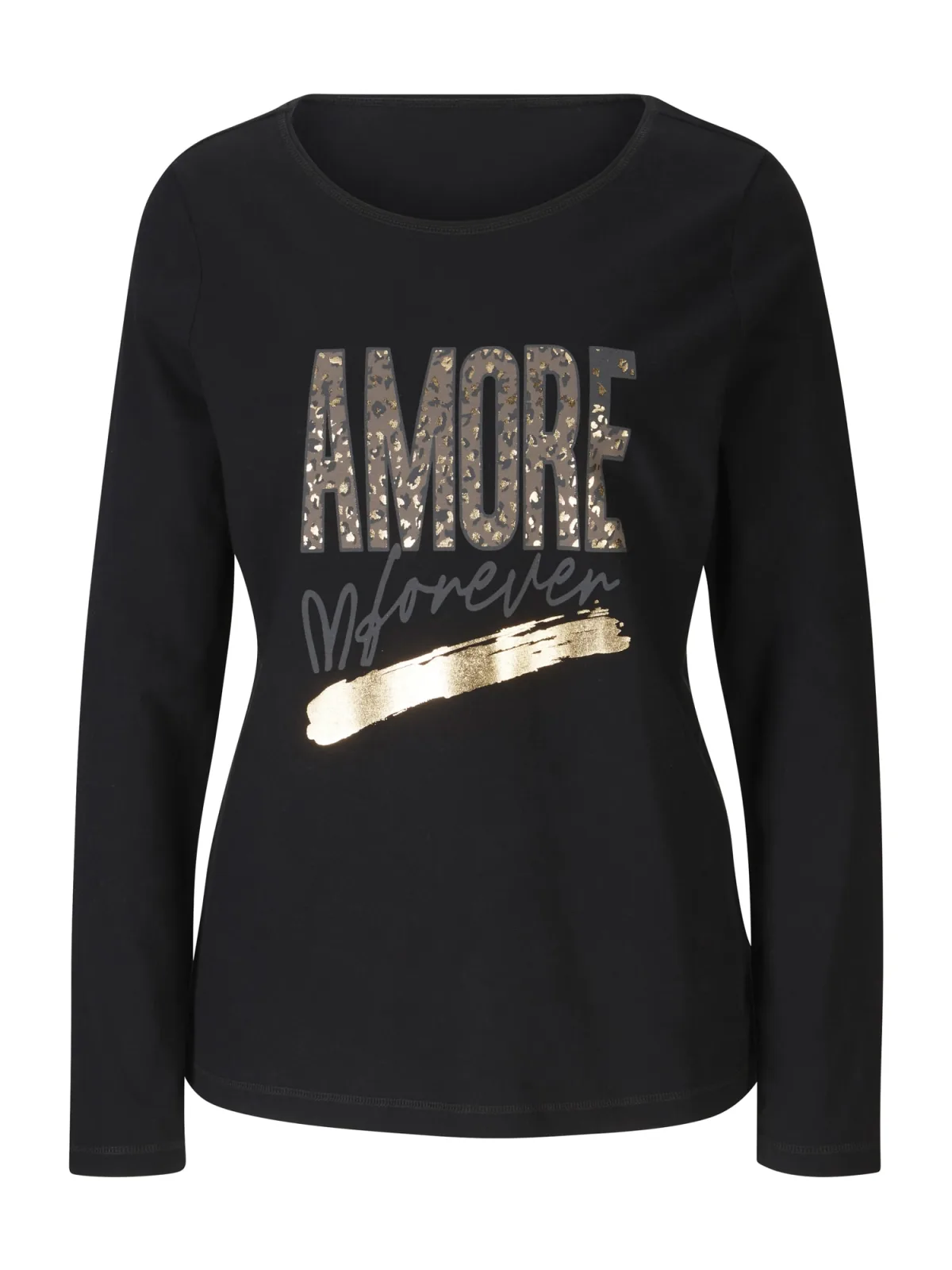 Design: Geribbelde kraag; Materiaal: Jersey; Halstype: Ronde hals; Motief: Tekst print; Extra's: Op staal naden; Pasvorm: Normale pasvorm; Armlengte: Lange mouw; Lengte: Normale lengte