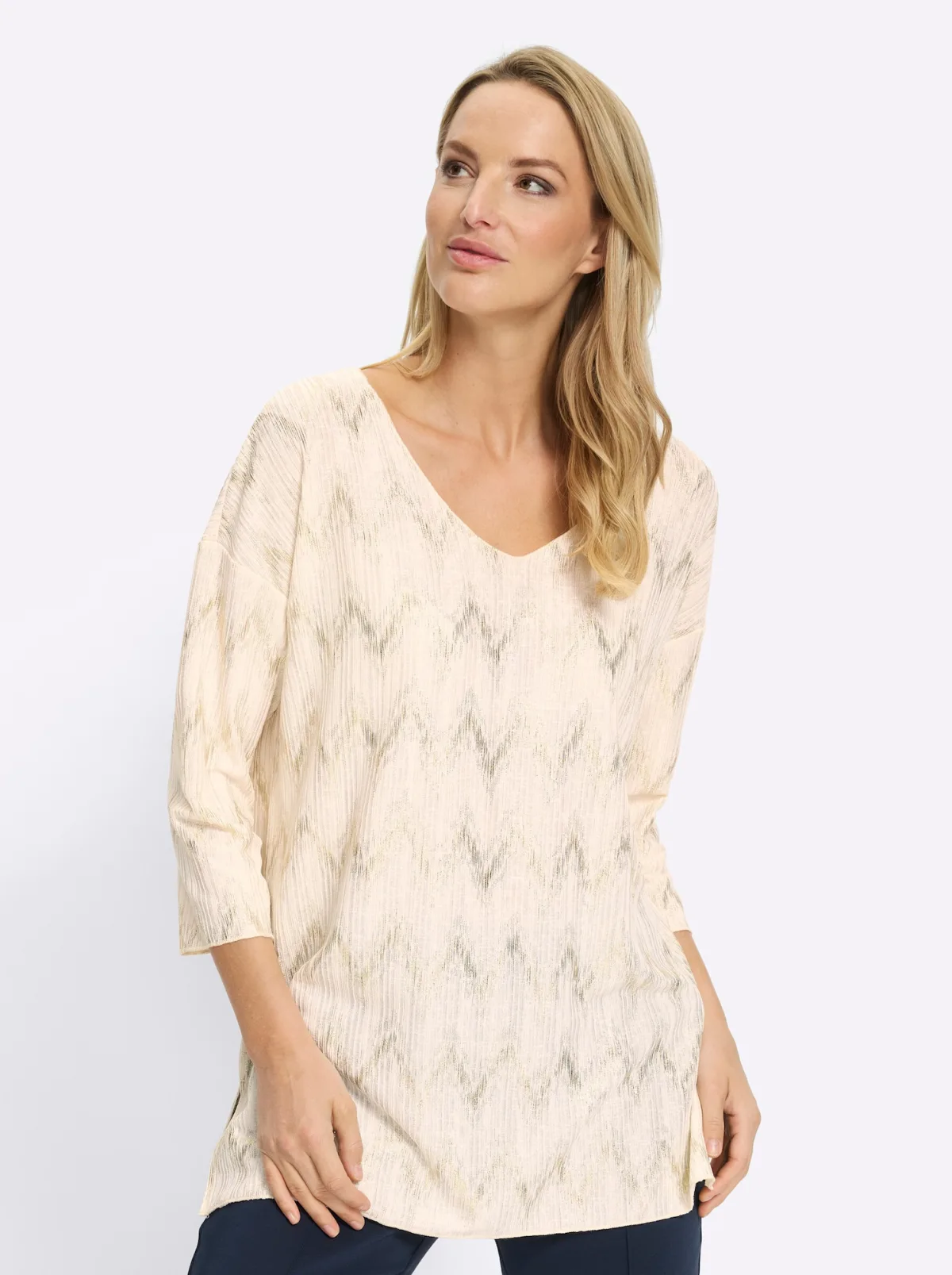 Design: A-lijn; Halstype: Ronde hals; Extra's: All-over patroon; Pasvorm: Losse pasvorm; Armlengte: Driekwart mouw; Lengte: Lange pasvorm