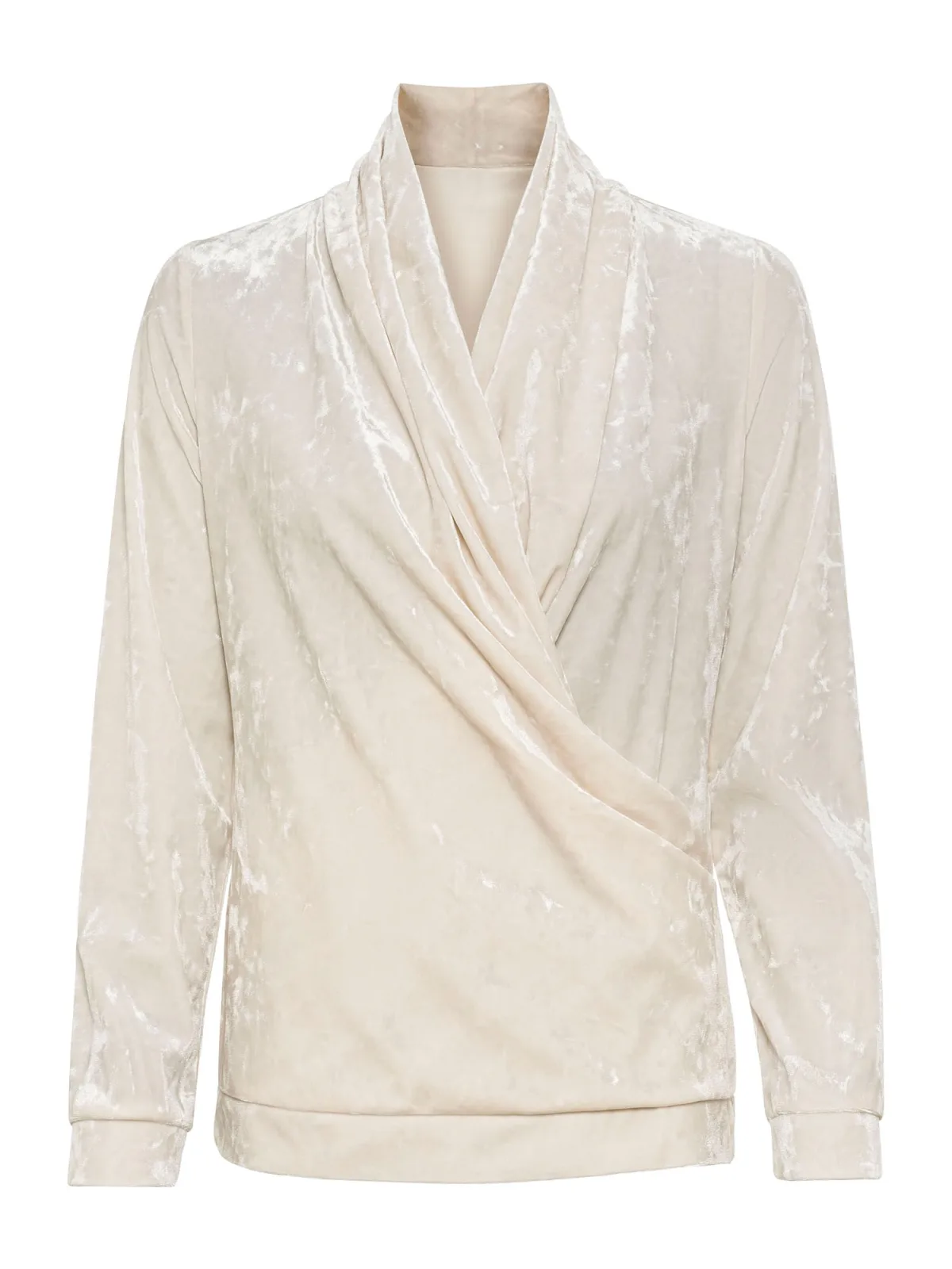 Design: Rechte zoom; Materiaal: Fluweel/Nicky Velours; Halstype: Watervalhals; Motief: Effen; Details: Gedrapeerd, Wikkel design; Extra's: Voelt zacht aan; Pasvorm: Normale pasvorm; Armlengte: Lange mouw; Lengte: Normale lengte
