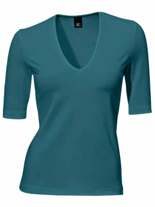 Design: Gevoerde zoom/rand, Getailleerd model; Materiaal: Jersey; Halstype: V-hals; Motief: Effen; Extra's: Op staal naden, Voelt zacht aan; Pasvorm: Aansluitende pasvorm; Armlengte: Halve mouw; Lengte: Normale lengte