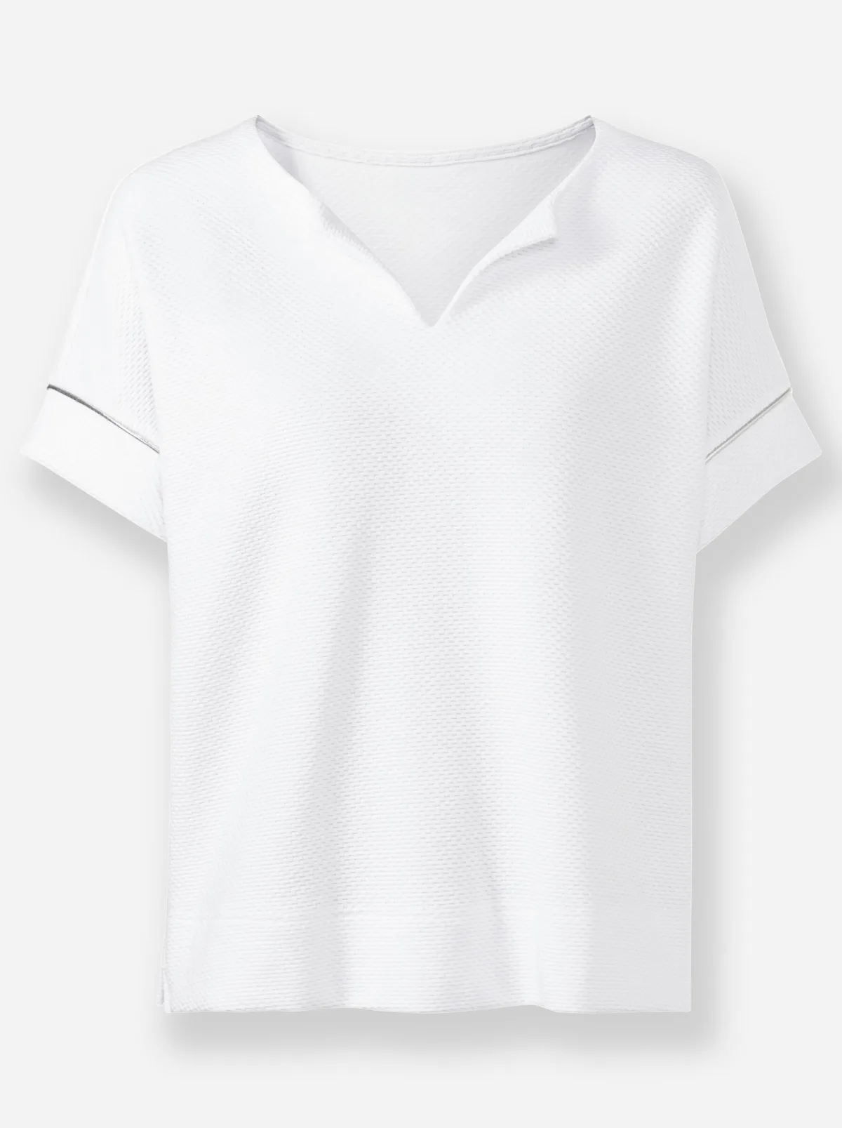 Design: Overcut schouder; Materiaal: Sweatstof; Halstype: V-hals; Motief: Effen; Extra's: Met textuur; Pasvorm: Wijde pasvorm; Armlengte: Kwartmouw; Lengte: Normale lengte