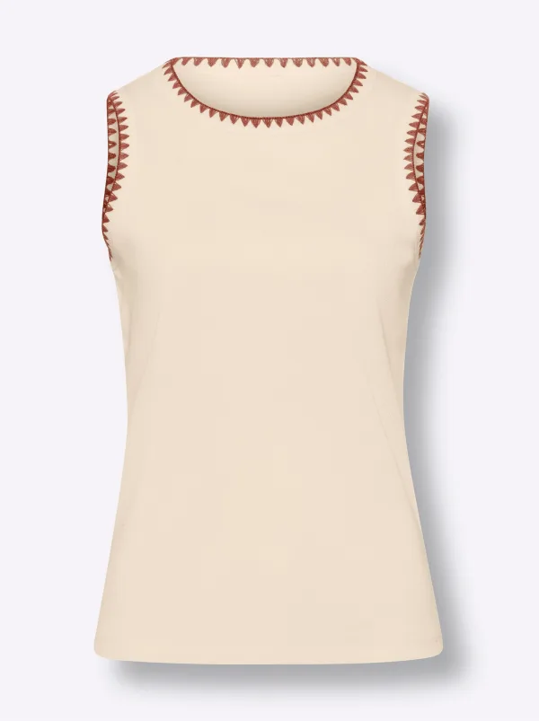 Design: Geribbeld gebreid; Materiaal: Jersey; Halstype: Ronde hals; Motief: Color-Blocking; Details: Borduursels; Extra's: Voelt zacht aan; Pasvorm: Aansluitende pasvorm; Armlengte: Mouwloos; Lengte: Normale lengte