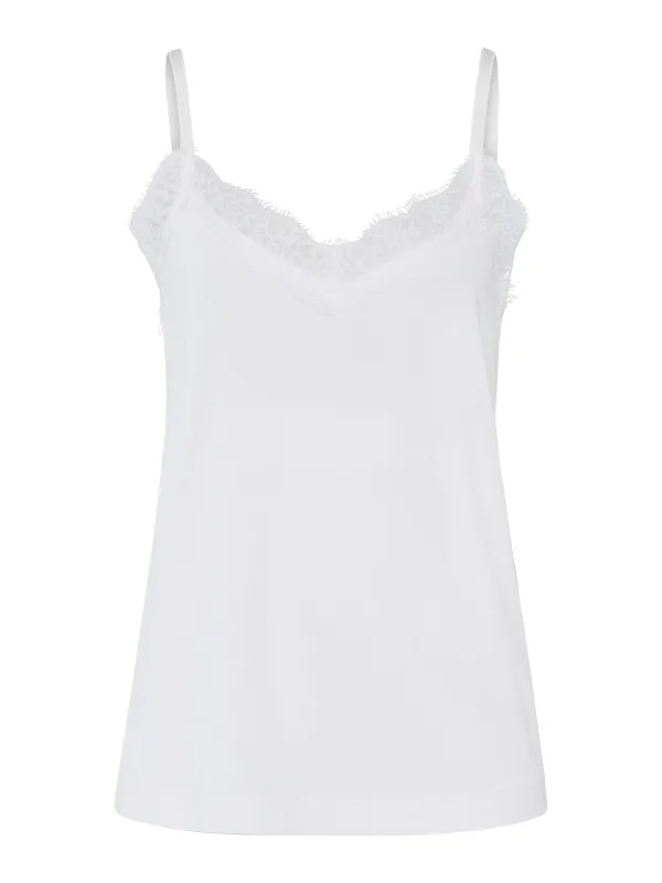 Design: Gevoerde zoom/rand; Materiaal: Jersey; Halstype: V-hals; Motief: Effen; Soort bandjes: Spaghettibandjes; Details: Kant; Extra's: Buigzame grip; Pasvorm: Normale pasvorm; Armlengte: Mouwloos; Lengte: Normale lengte