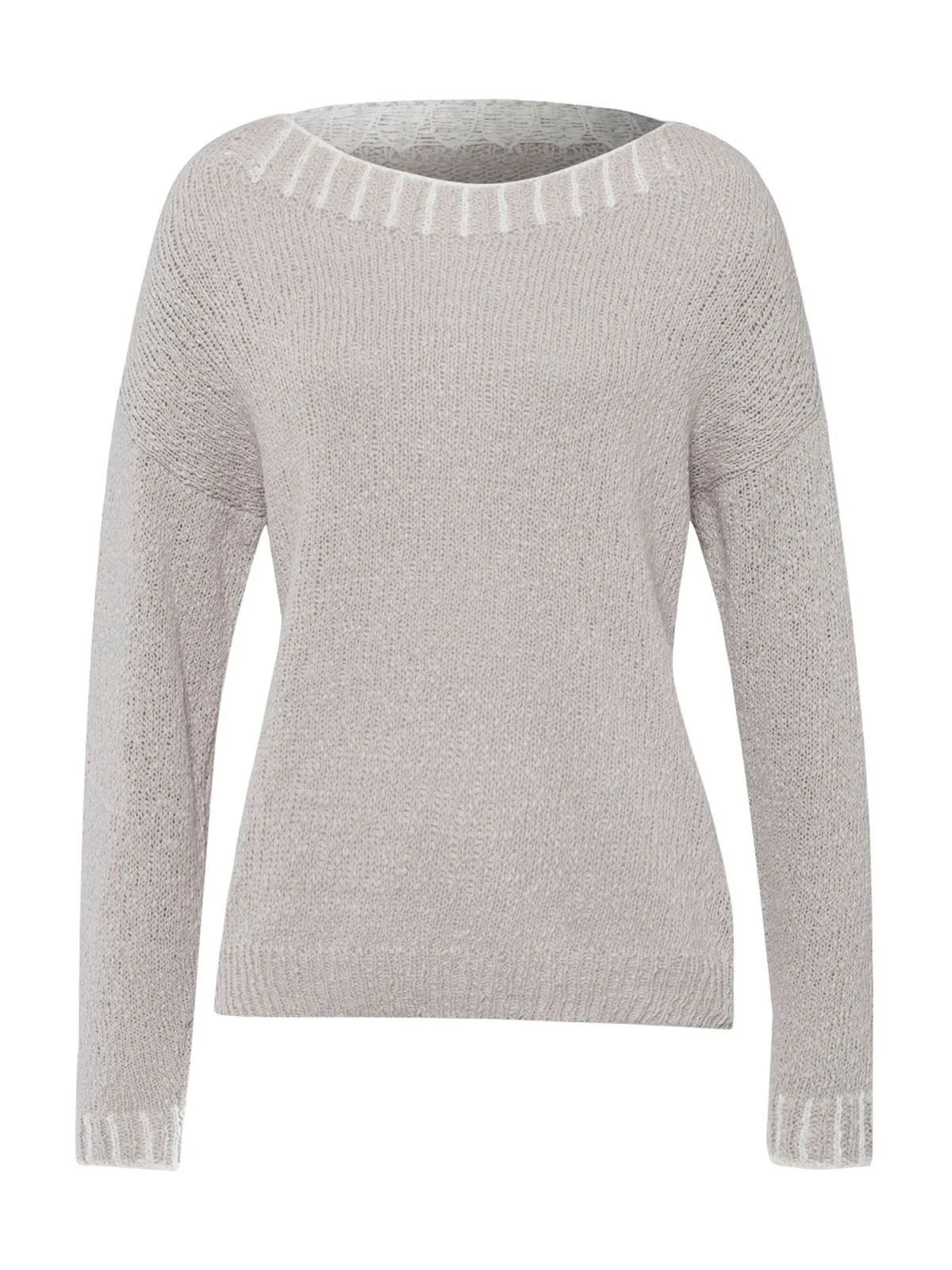 Design: Geribd ceintuurtje; Materiaal: Knitwear; Halstype: Ronde hals; Motief: Mélange; Extra's: Met textuur; Pasvorm: Normale pasvorm; Armlengte: Lange mouw; Lengte: Normale lengte