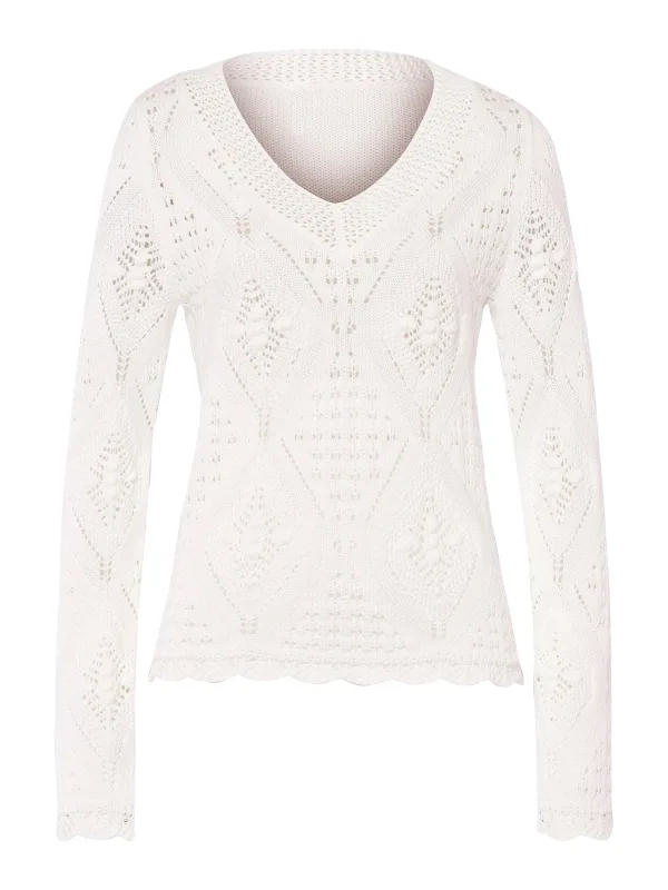 Design: Geschulpte zoom; Materiaal: Knitwear; Halstype: V-hals; Motief: Effen; Details: Mesh; Extra's: Voelt zacht aan; Pasvorm: Normale pasvorm; Armlengte: Lange mouw; Lengte: Normale lengte