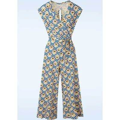 “Your go-to for sunny, carefree days.” Deze comfy beauty heeft een vaste overslagtop, strikbanden in de taille en wijde culottepijpen die soepel met je meebewegen. Ze is uitgevoerd in een supercomfortabele, stretchy organische katoenmix met een ruitjesprint in blauw en crème, afgewerkt met palmbomen en citroenen. * Jumpsuit * Vaste overslag top * Mouwloos * Keyhole aan de achterzijde * Vaste strikbanden * Geen rits of knopen; aantrekken en ready to go! * Wijde pijpen (culotte)
