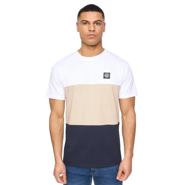 Henleys Heren Henpanel Kleurblok Katoenen T-Shirt (Wit) Prijzen