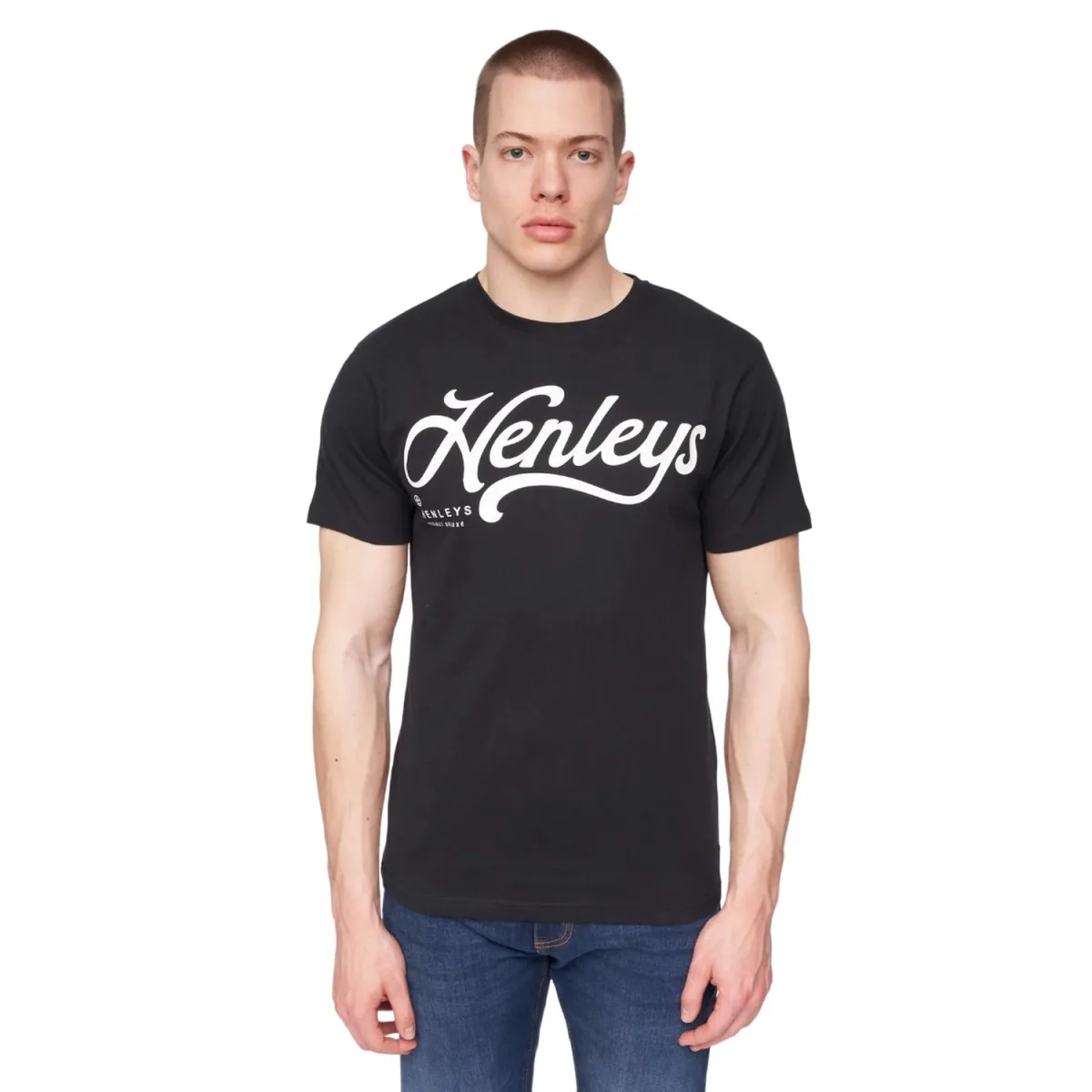 Henleys Heren Scripthen Logo T-Shirt (Zwart) Prijzen